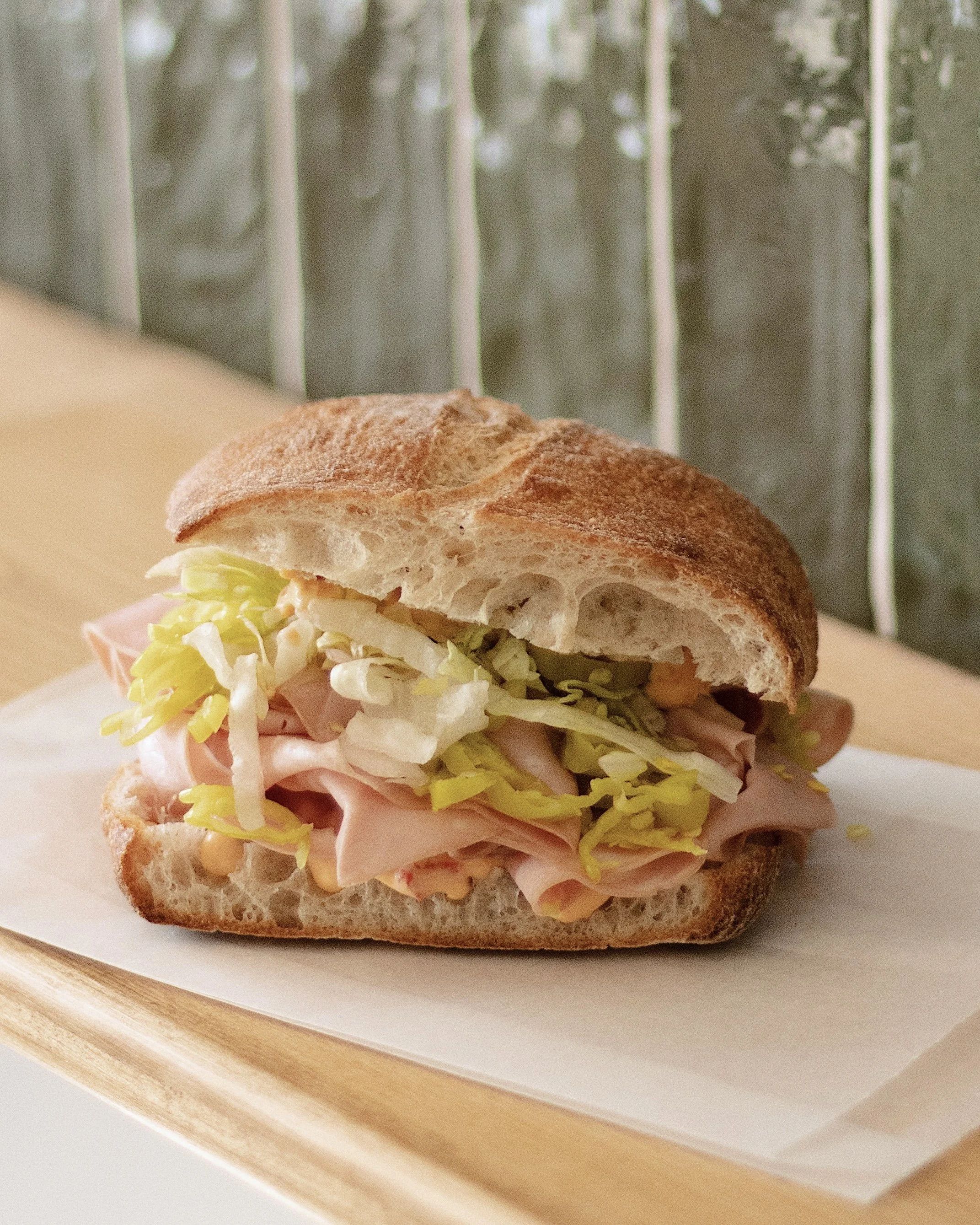MENU*MENU CHANGES REGULARLY* BAKED GOODS BREAKFAST LUNCH & LATER DRINKS Baked Goods While Supplies Last $4.50 PLAIN CROISSANT $4.50 $5.00 PAIN AU CHOCOLAT $5.00 $5.00 RASPBERRY TURNOVER $5.00 $5.00 MARINATED TOMATO & RICOTTA DANISH $5.00 $4 SCONE Blueberry buttermilk $4 $4.25 MORNING GLORY LOAF $4.25 $3.50 RYE CHOCOLATE CHIP COOKIE $3.50 $3.50 GINGER MOLASSES COOKIE $3.50 $3.50 WALNUT & WHITE CHOCOLATE COOKIE $3.50 $3.50 OATMEAL RASIN COOKIE $3.50 $8 WHITE SOURDOUGH $8 $8 SESAME RYE SOURDOUGH $8 $9 12 GRAIN SOURDOUGH $9 $9 WHITE SANDWICH LOAF $9 $5 BAGUETTE $5 Breakfast 8-12 $8 BREAKFAST SANDWICH Ham, egg, orange cheddar, greens, on an english muffin. Your choice of tomato relish or HP sauce $8 $10 BAKERS BREAKFAST Croissant, cheese, homemade jam, grapes, boiled egg $10 $6 YOGURT PARFAIT Greek yogurt, homemade seedy granola, blueberry preserves, dried blueberries $6 LUNCH & LATER 10-6 SANDWICHES $11 EGG SALAD Kewpie mayo, iceberg, salt, pepper, on our homemade white bread $11 $11 TURKEY AND CHEESE Orange cheddar, dijon mayo, iceberg, on our homemade white bread $11 $11 HAM AND CHEESE Orange cheddar, dijon mayo, iceberg, on our homemade white bread $11 $11 TUNA Tuna, mayo, mustard, pickles, iceberg, on white bread $11 $13 ROAST BEEF Medium rare beef, horseradish cream, pickles, arugula, on our ciabatta bun $13 $11 JAMBON BEURRE Smoked ham, cultured butter, pickles, on our baguette $11 $12 BEETROOT SANDO Beet hummus, roasted beets, pickled red onion, Ciro's fresh mozzarella, vinaigrette, on our ciabatta bun $12 $13 MUFFULETTA Mortadella, genoa salami, swiss cheese, olive salad, mayo, vinaigrette on our ciabatta bun $13 $13 SPICY SALAMI Hot genoa, roasted red peppers, Ciro's fresh mozzarella, vinaigrette, arugula, on our ciabatta bun $13 $2 ADD Chips and a pickle to any sandwich $2 $5 ADD Side tomato soup $5 $6 ADD Bean salad $6 LUNCH & CHARCUTERIE $6 BEAN SALAD Chickpeas, green lentils, tomato, cucumber, hot peppers, parsley, red wine vinaigrette $6 $10 SOUP WITH SOURDOUGH Creamy tomato soup with fresh sourdough bread $10 $15 PLOUGHMAN'S LUNCH A selection of 2 deli meats, cheese, pickles, boiled egg, homemade jam and baguette $15 MP TINNED FISH LUNCH Your choice of tinned fish, cultured butter, olives, pickles, grapes, baguette MP $45 CHARCUTERIE BOX Blomidon Brie cheese, Manchego cheese, fennel salami, salchichon Spanish salami, preserves, pickles, olives, grapes - serves 2-4 people $45 DRINKS $2.50 10oz / $3.50 16oz FILTERED COFFEE Have fun - Big sipper blend $2.50 10oz / $3.50 16oz $4.50 / $10oz HOT CHOCOLATE $4.50 / $10oz $4.00 / $10oz HOT APPLE CIDER $4.00 / $10oz $4.50 ICED COFFEE Party iced coffee by Anchored $4.50 $4.50 HIBISCUS PASSION FRUIT ICED TEA $4.50 $4.50 LEMON EARL GREY ICED TEA $4.50 $3 TEA $3 $2.50 SODA Coca-cola, or Diet coke $2.50 $3 LA CROIX Rotating flavours $3 $3.75 BLACK RIVER JUICE $3.75